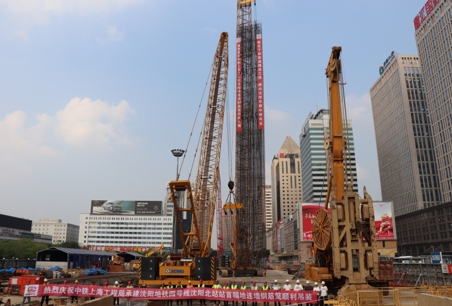 沈陽地鐵4號線七(1)標項目沈陽北站站地連墻首幅鋼筋籠成功吊裝