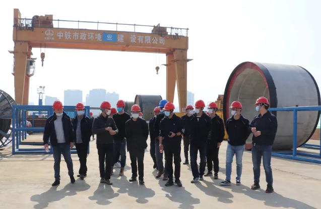 觀摩期間,王繼武一行實地察看了現(xiàn)場安全文明施工情況,聽取了項目負(fù)責(zé)人對施工進(jìn)展、現(xiàn)場管理、面臨的重難點問題等方面的詳細(xì)匯報。王繼武就施工現(xiàn)場放置的DN3500F型混凝土管結(jié)構(gòu)、頂管進(jìn)排泥系統(tǒng)工作原理與項目負(fù)責(zé)人進(jìn)行了交流。觀摩最后,王繼武對項目現(xiàn)場的安全文明施工建設(shè)表示高度贊許,并對工程DN3500穿湖頂進(jìn)貫通表示祝賀。