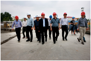 5月27日上午,上海市城市建設投資開發(集團)總公司副總裁王志強,上海市城市建設投資開發(集團)總公司副總裁、上海城投水務(集團)有限公司總經理樊仁毅,上海城投水務(集團)有限公司副總經理麥穗海、上海市城市建設投資開發(集團)總公司重大工程建設辦公室主任吳冠軍、上海市城市排水有限公司總經理周驊等一行10人蒞臨公司新宛平排水系統工程XWP1.1標項目部進行現場調研,公司執行董事、黨委書記陳建鳴,副總經理胡斌陪同調研。
